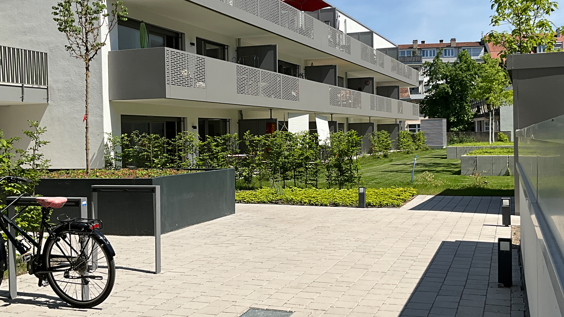 Insgesamt ist ein neues Areal von 2.840 m² in bester Lage entstanden. Die Besonderheit des Wohnprojekts in der Geranienstraße: Die Eigentumswohnungen mit 1 bis 3 Zimmern und ca. 40 bis 112 m² Wohnfläche eignen sich durch ihre Barrierefreiheit, gute Infrastruktur und die direkte Nachbarschaft zu einem Pflegeheim besonders für ältere Menschen. Es ergibt sich hier die Möglichkeit, vom kulturellen Freizeitangebot der Einrichtung zu profitieren und auf eine Betreuungsoption des Nachbargebäudes in den eigenen vier Wänden zurückzugreifen. Unter diesem Aspekt galt als Voraussetzung für den Erwerb, dass mindestens ein Bewohner pro Wohneinheit 60 Jahre oder älter sein muss.